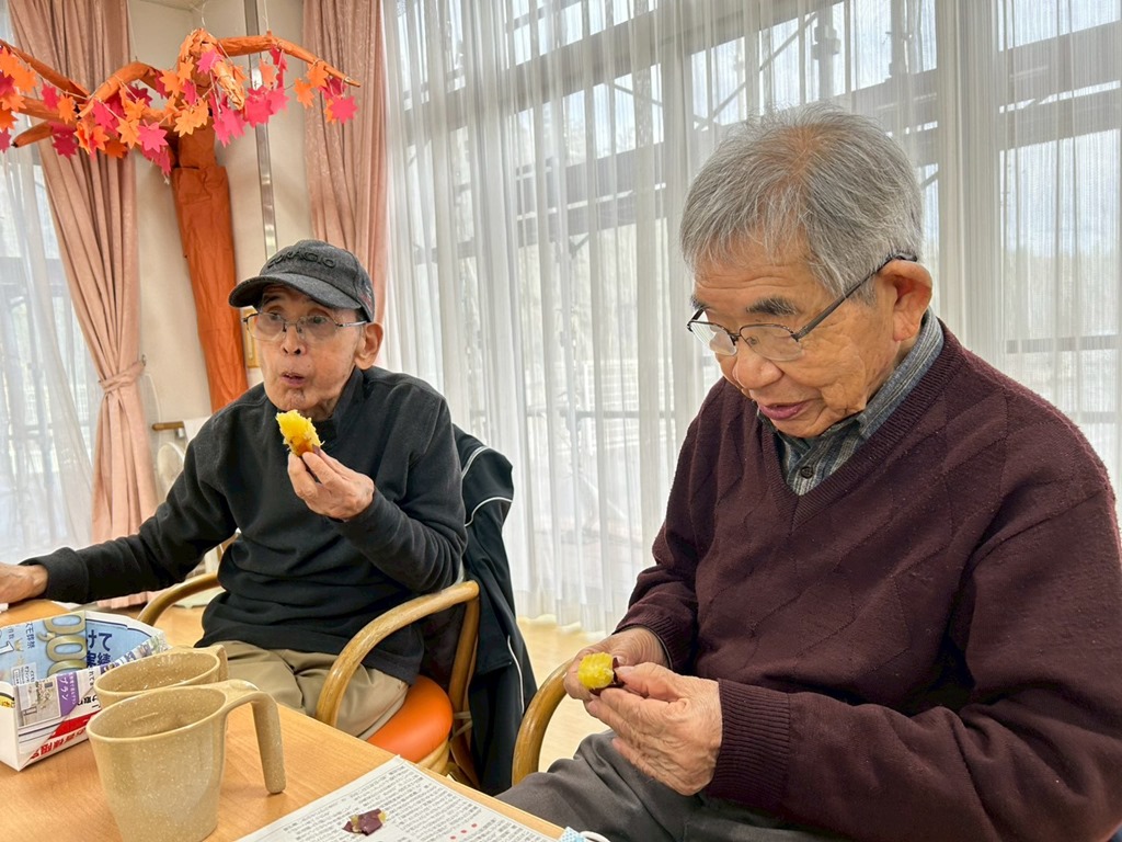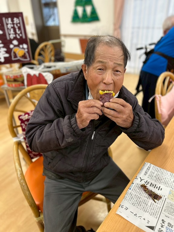 11月のイベントとしてここ2、3年恒例となっています「焼きいも会」を行いました。小春日和が続いていましたが、当日は冷たい雨が降り気温がぐっと下がったので、焼きいもがより美味しく感じられました。