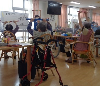 棒体操中「結構効くね」と笑顔で話される方もいます。