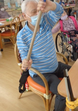 今回のリハビリ教室は作業療法士が担当し、「作業療法士についてと棒体操」を行いました。