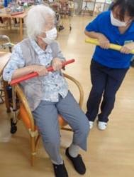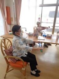 席が一緒の利用者様同士で会話しながら体を動かされている姿も。