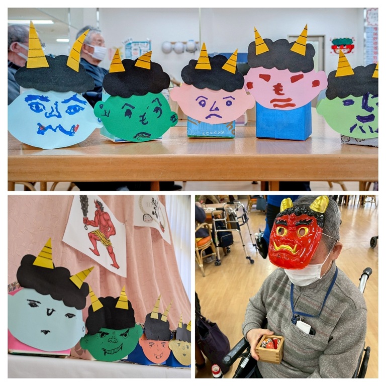 隣の方の様子をのぞいてみたり、見せ合ってみたりしながら個性豊かな鬼の枡ができあがりました。